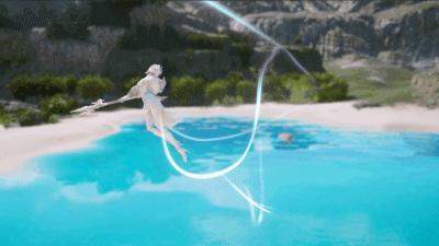 更離譜的是,這套時裝還有獨特的“地形自適應變身機制”,根據地形(陸地/水域)的不同自動變裝。要是時裝也有雙重人格,它恐怕真的可以被玩家的反覆橫跳給玩“暈”了。