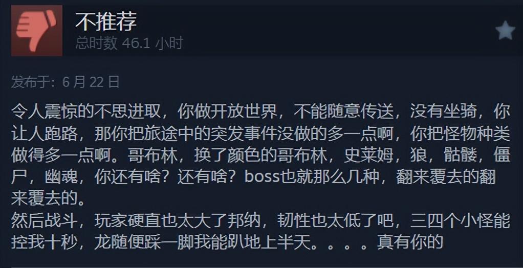卡普空十連磨一劍的大作《龍之信條2》也就只拿到了5.9分,後因開放世界的怪物重複堆疊,被玩家給調侃成“哥布林殺手”。