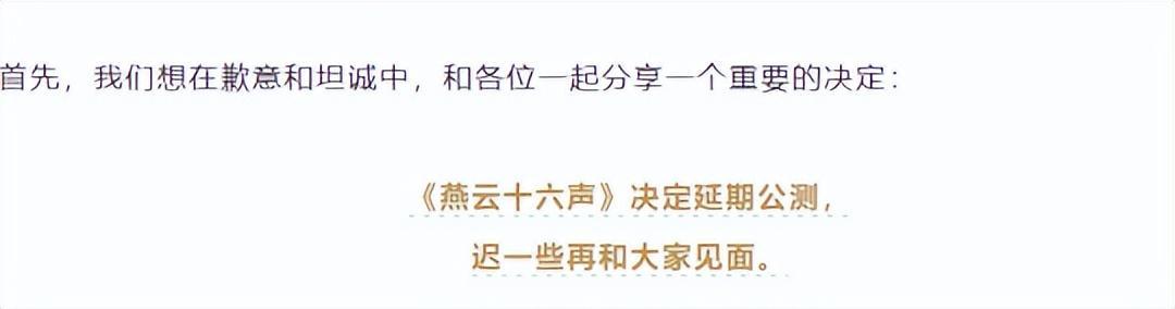 還有說好了7月26日公測,臨了卻改變主意的《燕雲十六聲》……
