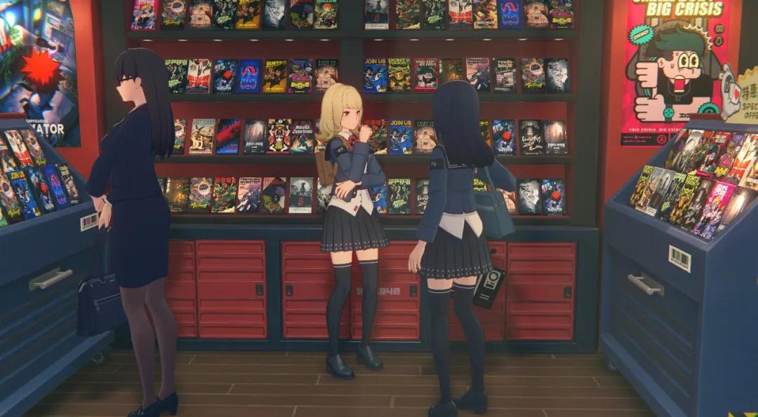嚴錦彥:《絕區零》的設計很聰明。比如它把鉚釘、皮衣等朋克文化,融進了米家擅長的二次元角色設計裏面,包括城市、NPC的塑造,都符合當下年輕人的審美。而那些比較挑人的,更“核”一點的表達,它就做成了平面設計,比如錄像店裏的海報。所以它既有小衆表達,又能被大衆接受。