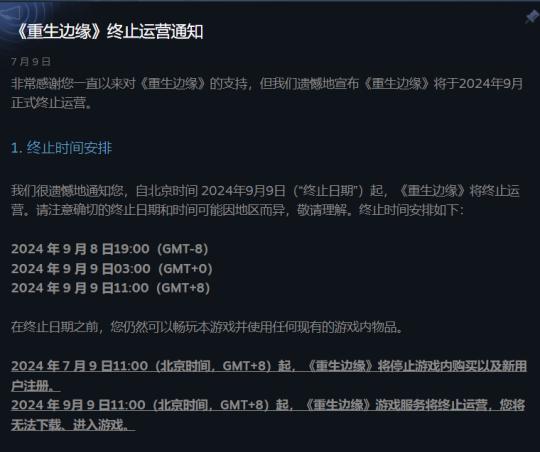 7月9日,騰訊旗下NEXT Studios打造的科幻策略射擊遊戲《重生邊緣》正式宣佈,遊戲將於2024年9月9日11點正式停止《重生邊緣》在中國大陸地區的運營。