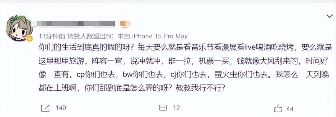 當然,BW的火熱也引爆了另一個話題,到底是誰可以不上班不上學,到處飛去別的地方逛漫展啊?