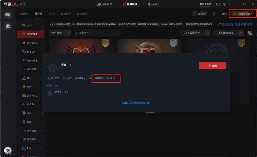 使得通過黑盒下載的用戶無法正常使用,爲此,用戶紛紛反饋我們的大腳插件存在使用難題,實際上,這是都是由於遊戲版本不匹配所導致的。