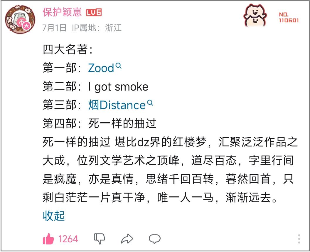 宋代詞人蔣捷,創作過一首名爲《虞美人·聽雨》的詞,以“聽雨”爲媒介,將數十年跨度的時間和空間相融合,概括出人一生中少年、壯年和晚年,對於相同事物的不同心境。理塘金曲中的丁真,也在被不斷解構,不斷自我革命。每一次重生,都帶來新的視角,和更好的作品。三部曲的補完,建立了丁真宇宙的“物理學大廈”,在此之上,藝術家們各傾陸海的時代開始了。此後的丁真金曲,質量水漲船高,題材更加光怪陸離,厚重如磐石,又飄渺如飛仙。比如UP主“夜吟月寒丶”的《爸爸去哪兒抽》。儘管是一首娛樂屬性拉滿的“嗨曲”,但其創意和編曲複雜性,卻做到了極致。沒人知道這歌是在什麼精神狀態下寫出來的,但每個人都能感受到一種毫無負擔的快樂,讓笑容形成共鳴,組成美妙的和絃。而在藝術層面,夜吟月寒最好的作品,是一首傳唱度沒那麼高的《丁家坡》。它是《煙Distance》的精神傳人,放下了針對丁真的粗鄙諷刺和抽菸梗,着重於走進丁真的內心世界。區別是,《煙Distance》所站的角度更宏大,而《丁家坡》,則原創了一個平行世界中沒能成名的丁真,借丁喻己,描述一個底層小人物的矛盾心境。而UP主“清風最夢”6月底創作的《死一樣的抽過》,同時在旋律、傳唱度、玩梗、歌詞質量、思想內涵方面,都做到了最高水平,堪稱丁真宇宙的集大成者。很多聽衆心目中,甚至已經把這首歌和三部曲並列,成爲了丁真宇宙的第四大名著。關於《死一樣的抽過》,已經無法僅用一兩段文字來解析,最好的安利方式,就是請大家親自欣賞聆聽。其實你會發現,丁真金曲變遷的最大特點是,無數創作者們,逐漸將自己內心世界,與丁真的形象雜糅在一起,借用丁真的形象,表達自己心目中的烏托邦,亦或是作爲普通人的自己,在時代洪流中掙扎矛盾的內心世界。他是年輕人對於社會現實的反抗,和對痛苦的自我嘲弄與消解。