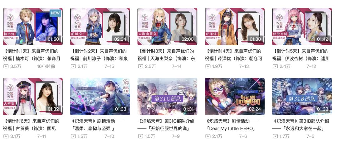 B站《HBR》的官方賬號中,有連續六天的倒計時預熱視頻,都是飾演遊戲角色的知名聲優祝福。