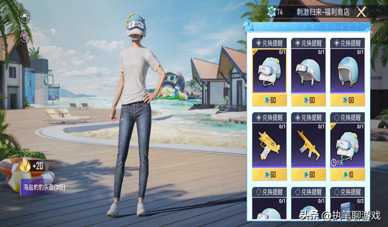 進入目前的遊戲中,我們就已經可以看到:“海鹽豹豹”系列的3個等級頭盔已經登場,用福利碎片直接兌換獲得。
