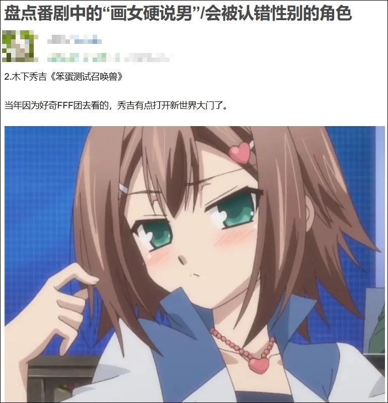 《刀劍神域》裏桐人在穿越GGO之後的“桐子”,《大春物》裏網球部的“戶冢彩加”,再往前一點,還有在《笨蛋,測驗,召喚獸》裏開創了第三性別“秀吉”的“木下秀吉”……