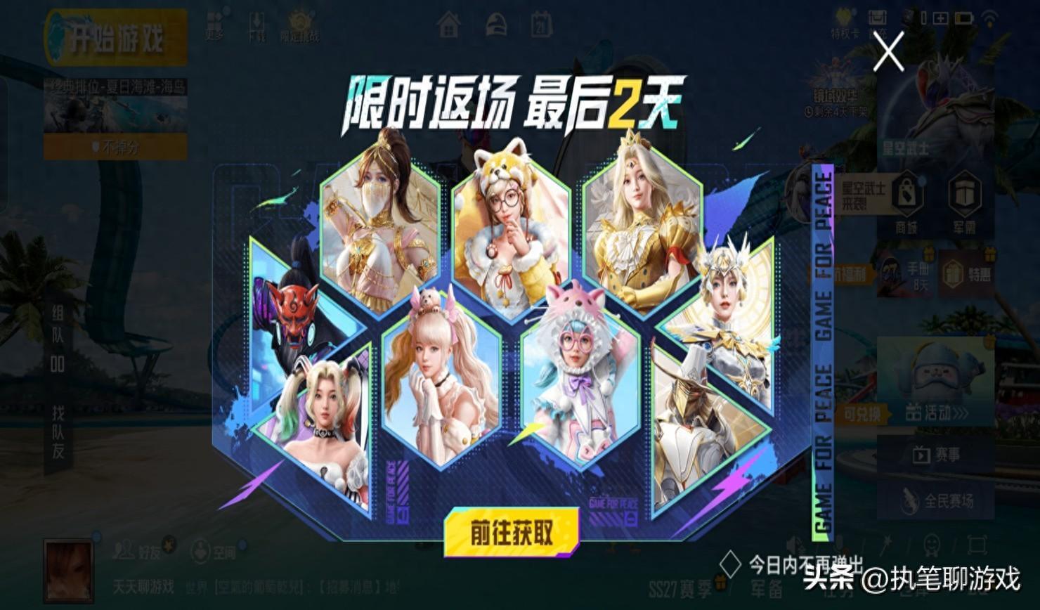 歡迎諸位小夥伴們來到天哥開講的《和平精英》“精英小課堂”~在大多數玩家都在關注“和平小店”的時候,遊戲中又出現了一系列的倒計時,與後續的返場、新軍需以及第5套神裝息息相關。