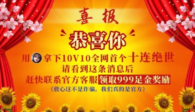 《王者榮耀》上線10V10遊戲模式。該模式已於18日上線,將啓用全新地圖,擁有4條分路,並添加了包括新大型野怪“黃BUFF”“地圖區域”和“佔領點”羣體增益、經濟分配規則等多種全新遊戲機制。此外在10V10模式中,還有一個隨時進場功能,允許玩家加入到其他玩家中途退出的對局,以及加入獨立段位、特有積分等全新的系統機制。另外值得一提的是,官方將爲首次達成“十連絕世”的玩家奉上實物足金獎品和定製榮譽。經過官方驗證,首個拿到十殺的英雄是“貂蟬”。