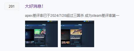 這兩天,已經運營了5年的《Apex英雄》迎來了重要的歷史時刻,各大玩家社區都格外熱鬧,大家奔走相告:我們玩的遊戲超過《三國殺》,登上Steam差評榜第一了!