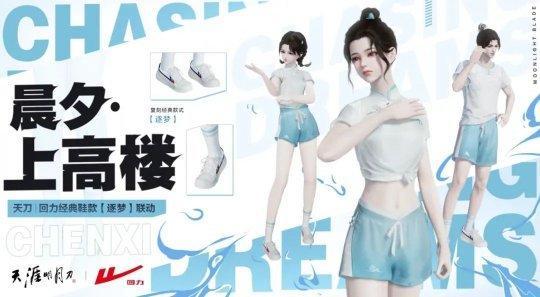 7月25日,天刀X回力聯動,普贈外觀【晨夕·上高樓】,復刻回力經典款【逐夢】。