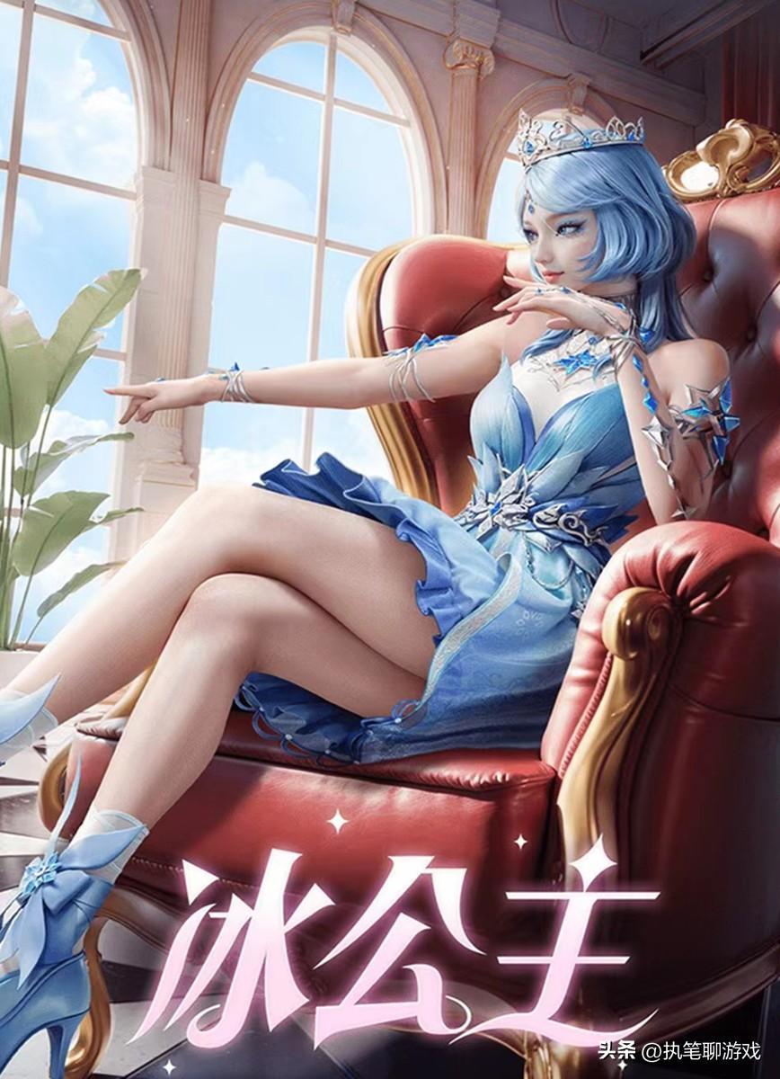接下來則是“冰公主”,以淡藍色爲主的連衣裙,看起來還算中規中矩,原型身上的“冰晶”元素爲核心,髮色幻化成爲剔透冰藍,最大的亮點則是遊戲中第1個“水母頭”的設計,手臂上也有許多冰晶飾品,看起來璀璨奪目。
