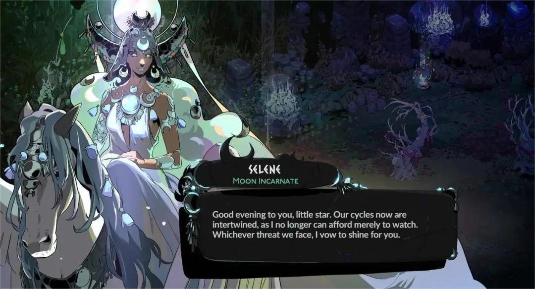 我個人最喜歡的角色是Selene(月亮女神)。因爲在《Hades II》中,我們一直在強調月亮的存在感,到處都有暗示月亮的象徵物。所以設計Selene,就好比是在鋪墊各種暗示後,最終給玩家呈現“真正的月亮是什麼樣的”。