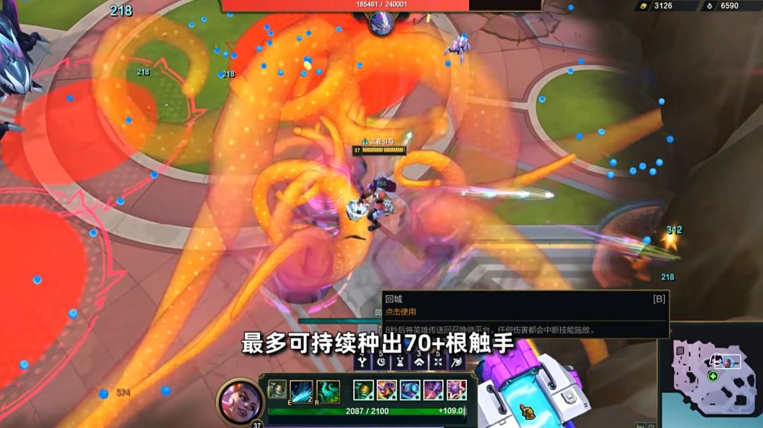 俄洛伊在PVE裏的技能是召喚觸手,觸手會在場上存在一段時間,自動攻擊附近的敵人。而在上述BUG的加持下,俄洛伊可以直接瞬時召喚整整11根觸手,熟練掌握可以直接殺死比賽。