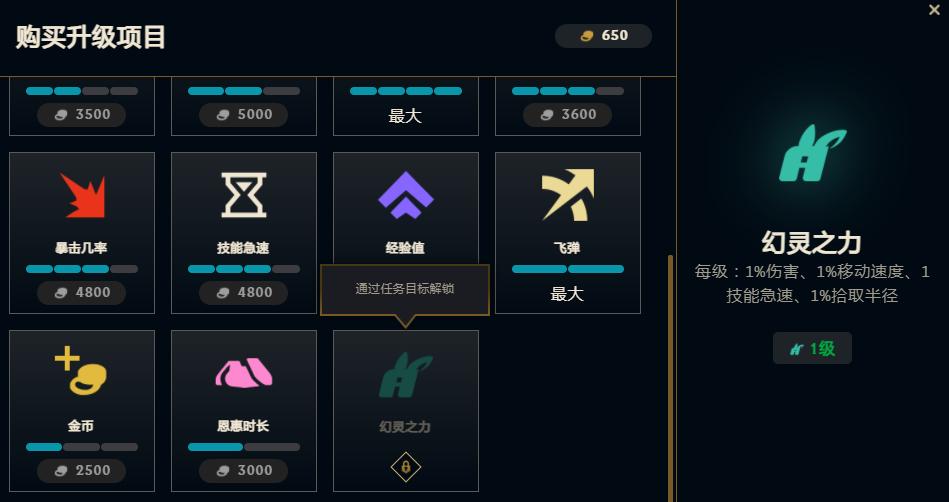 無盡狂潮外設了局外成長,在基礎屬性升滿之後,玩家可以通過加點額外提升1%的屬性。