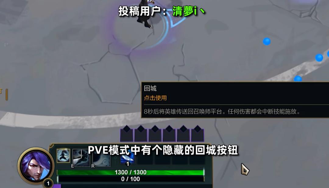 在UI之外,玩家還是可以通過光標,找到原本的回城按鈕,然後鼠標再輕輕一點,PVE英雄就會開始自動回城,重新回到遊戲剛開始的出生點。