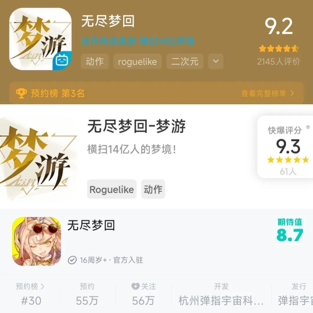6月底,第一次全平臺公開測試之後,《無盡夢迴》在B站,TapTap和好遊快爆上的玩家口碑,分別升到了9.2、8.7和9.3分。