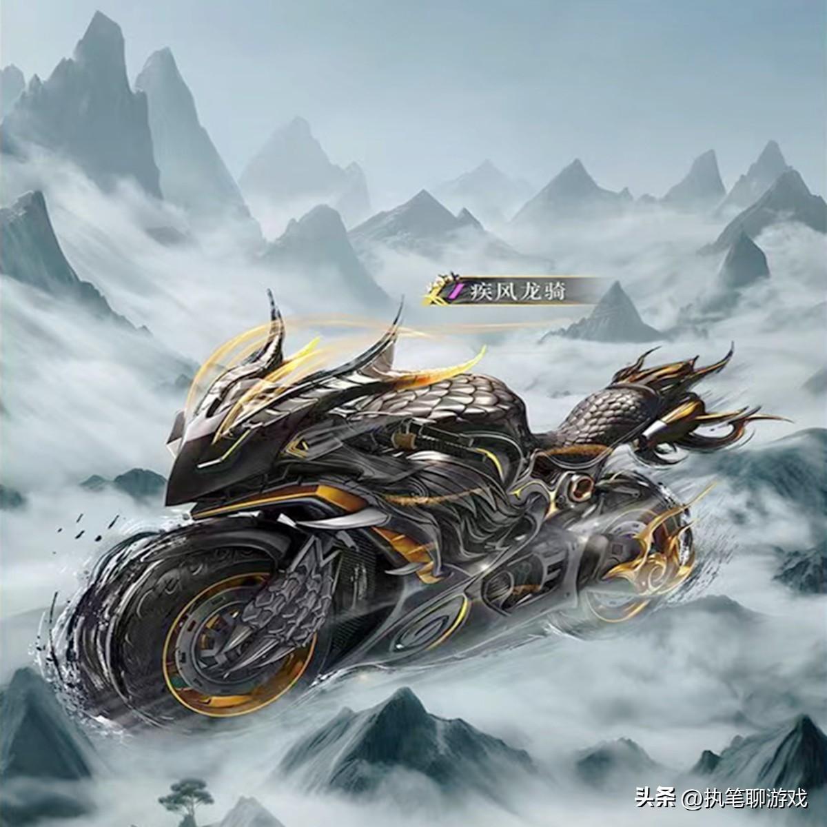 其實讓天哥最意外的是載具,當初只有UI名稱的時候,本以爲所謂的“疾風龍騎”必然會與馬兒有關係,就像當初的赤兔、玉獅子一樣,沒想到等到正式公佈之後,變成了摩托車,不僅在建模上採用了大量金屬元素,而且還結合了神龍元素,再加上大量的特效,天哥覺得這個摩托車比起那些卡通化風格的來講,算得上是很大的進步了。
