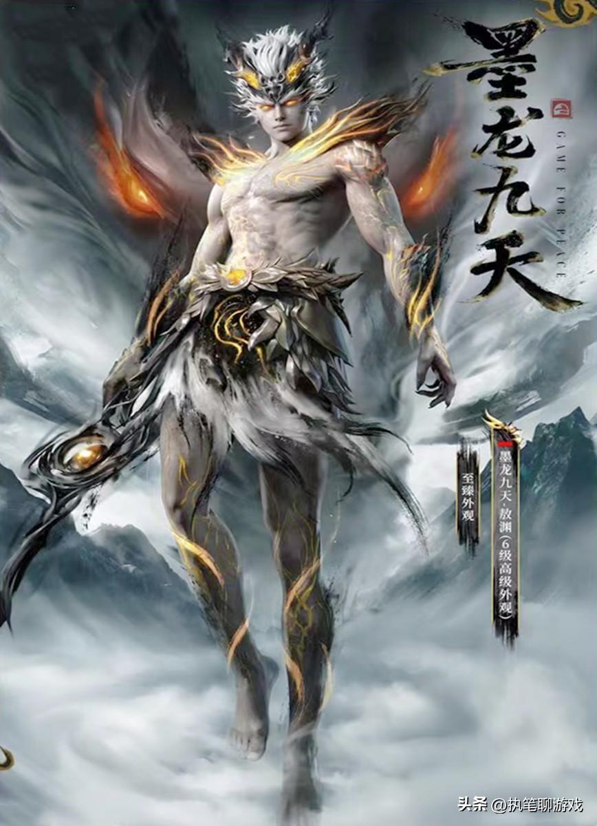 接下來則是6級的高級外觀,原本非常明顯的肩甲已經被金色特效取代,銀色龍角也出現了金色點綴,背後冉冉出現的水墨黑煙平添幾分神祕感,讓觀者留下深刻的印象。以如今的遊戲審美來看,遊戲中第一個“光膀子”的角色確實能夠拿得出手。