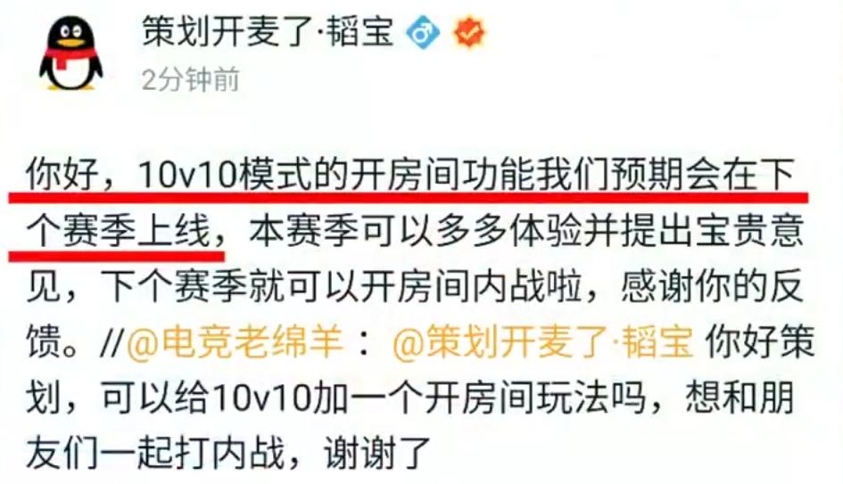 比如在更具娛樂性的環境下,它可以應用一些更前沿、更創新的想法,在經過玩家驗證和認可後,再考慮沿用到競技性更強的5v5中;在社交性上,它也能解決一些場景問題,比如情侶、朋友想走同一路,平時不一定能實現,但10v10就很隨意。等將來上線了開房間功能,說不定還會成爲新的團建神器。