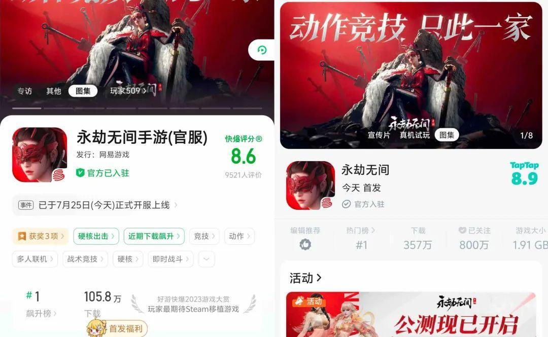 在如此大規模的用戶導入下,產品的用戶口碑也還不錯,TapTap評分8.9分,好遊快爆8.6分。