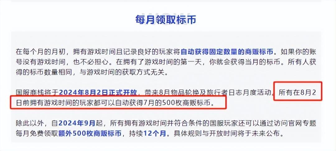 而在外服,這個商棧幣只能被那些有遊戲時長的付費用戶領取,所以這是否就意味着如果你想要拿到這個500幣,就得趕在8月1日開月卡且上線遊戲?