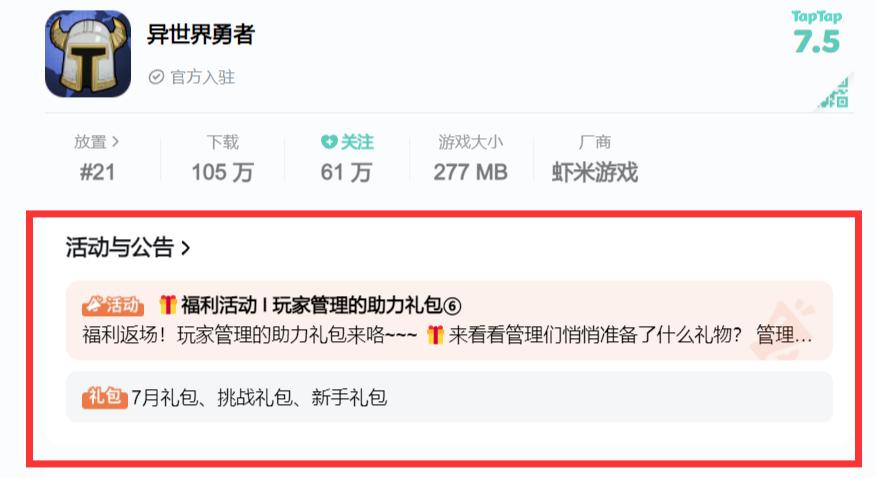 另一方面,廠商可換取的資源類型也很多。上面案例獲得的千萬級曝光,可不是TapTap自己直接掏錢給遊戲買量,而是通過平臺內外多場景的運營活動進行推廣,比如TapTap站內首頁的信息流投放。