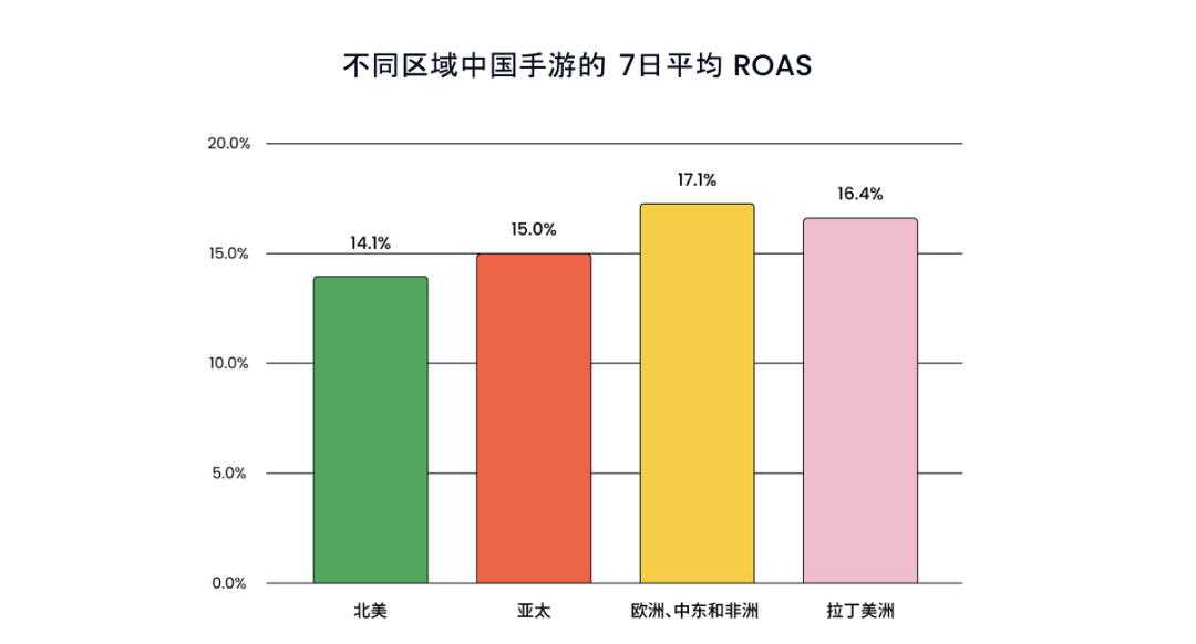 報告稱,雖然不同遊戲的投資回報率(ROI)差異很大,但就整體而言,歐洲、中東、非洲市場的7日廣告投資回報率較高,北美市場的投資回報率較低。