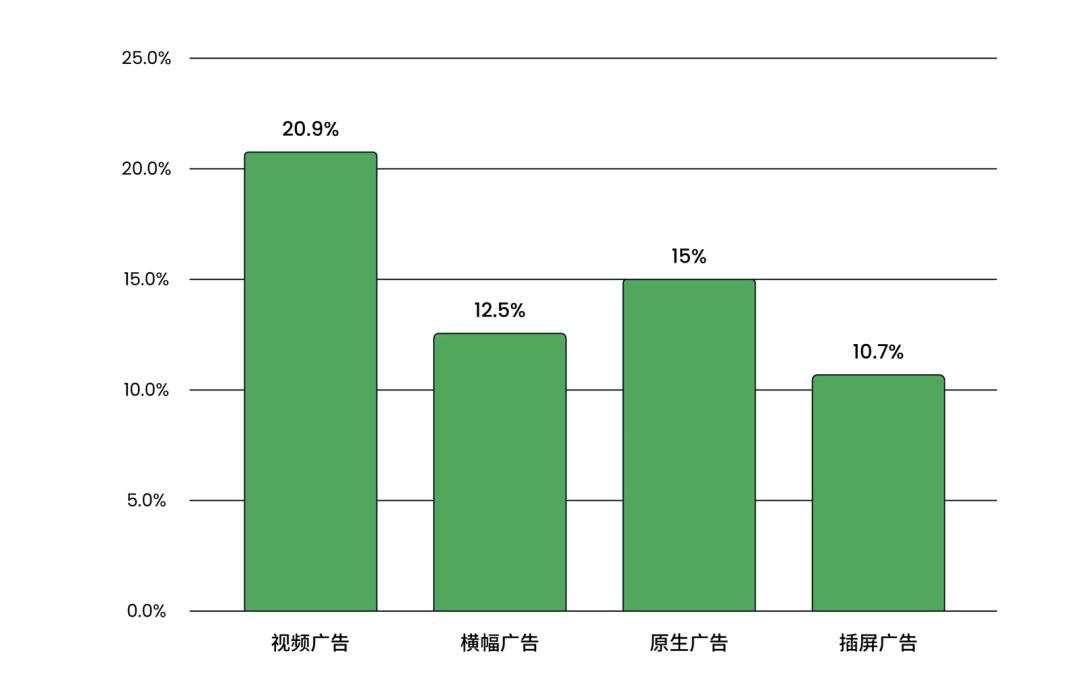 從7日投資回報率來看,視頻廣告也提供了最高的回報,超過了20%,其他廣告類型的回報率則在10%-15%之間。