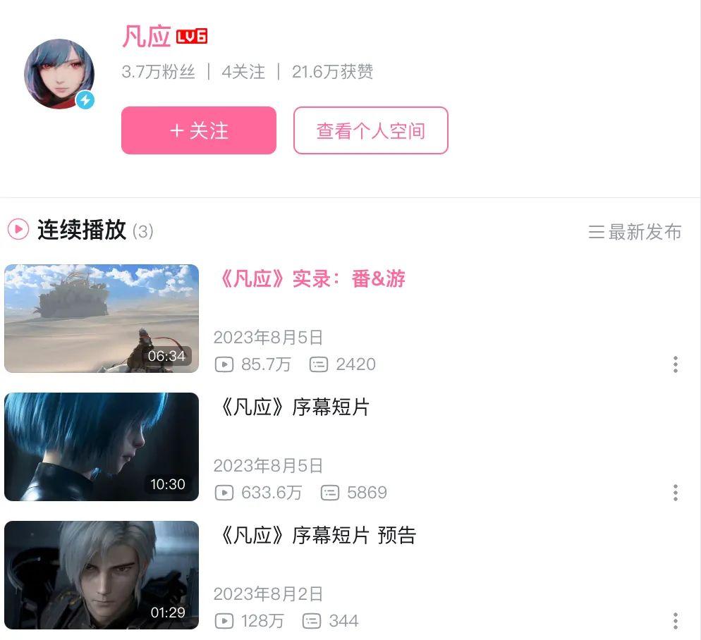 2023年8月初,藝畫開天以墨界遊戲的名義,在B站發佈了新作《凡應》的多條視頻,其中序幕短片的播放量已超過600萬。而根據標題中的「番&遊」,它可能是一個動畫+遊戲的IP企劃。