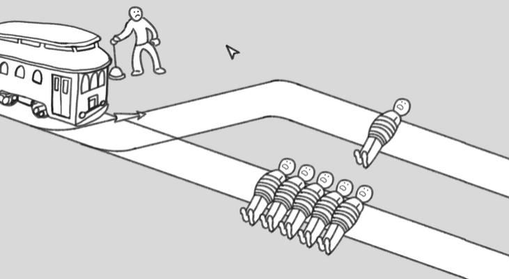 在面對即將無情碾過5個倒黴蛋的失控電車,手握操縱桿的你究竟該是該選擇改變軌道,讓電車碾過另一條軌道上的1個人,還是該讓電車按照正常路線碾過5個人?