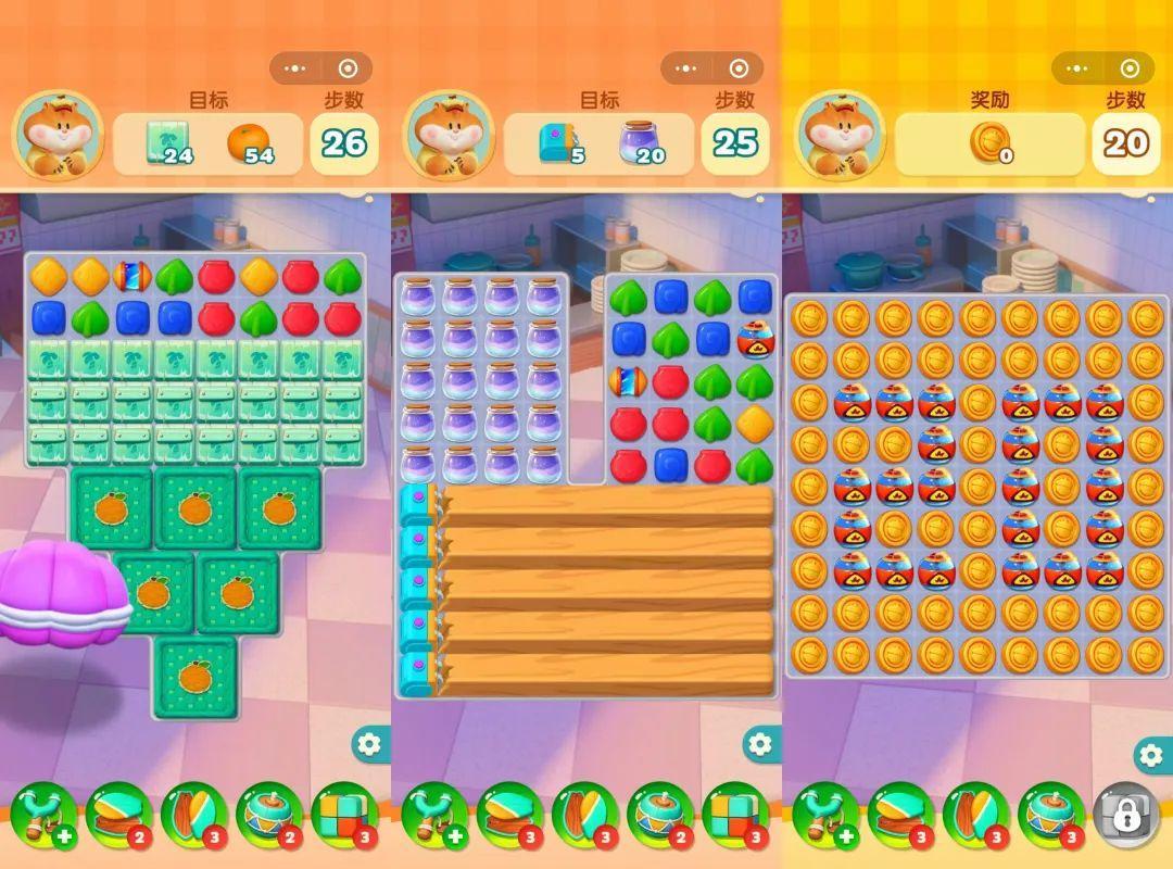 這和今天的《消消美食街》的方向恰恰相反——它更側重於三消本身,模擬經營其實存在感不強,產品體量也收縮至小遊戲的規模。
