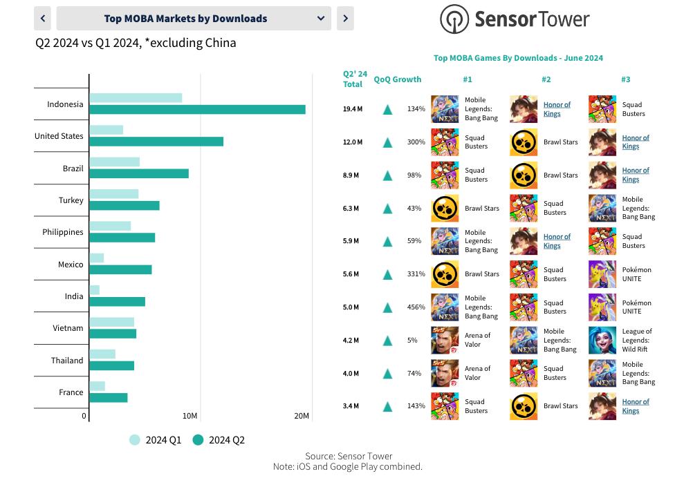 此外,MOBA新遊《Squad Busters》位列下載榜第7名,全球收入超過4500萬美元,下載量近5100萬次。