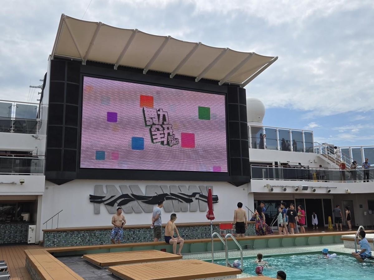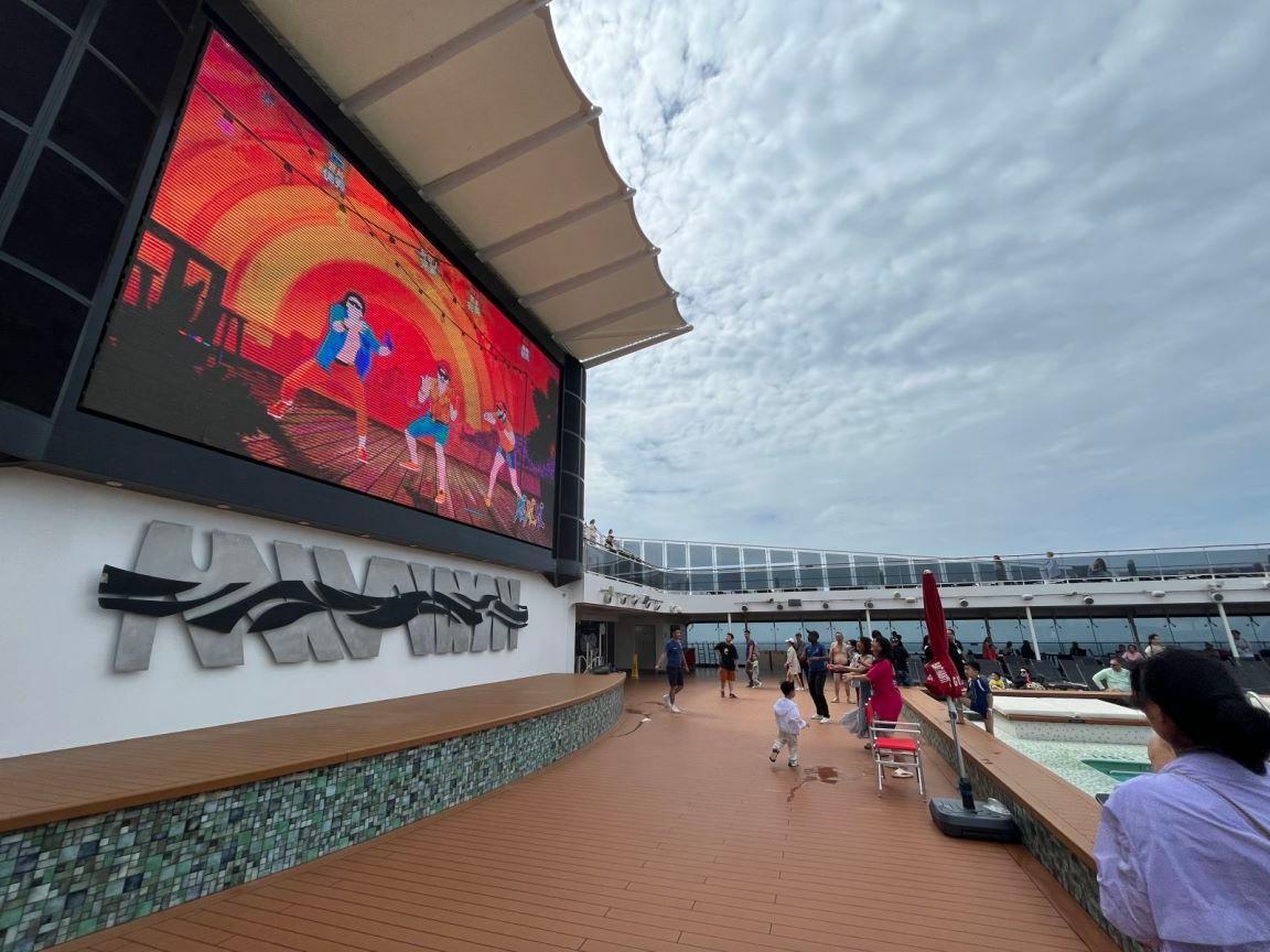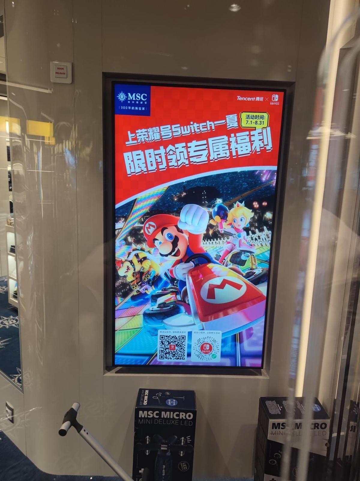 當然開頭也說了,我是旱鴨子,玩水項目更多就是看個熱鬧。我更想參與的還是與遊戲相關的“上榮耀號Switch一夏”主題活動,這是國行Nintendo Switch與MSC地中海郵輪共同打造的項目,船上的電子屏上也時不時會宣傳。