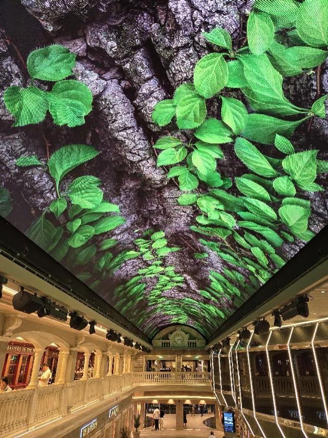 據說這條天幕可以切換200多種不同的動畫特效,視覺效果非常震撼,每時每刻都有人駐足拍照。