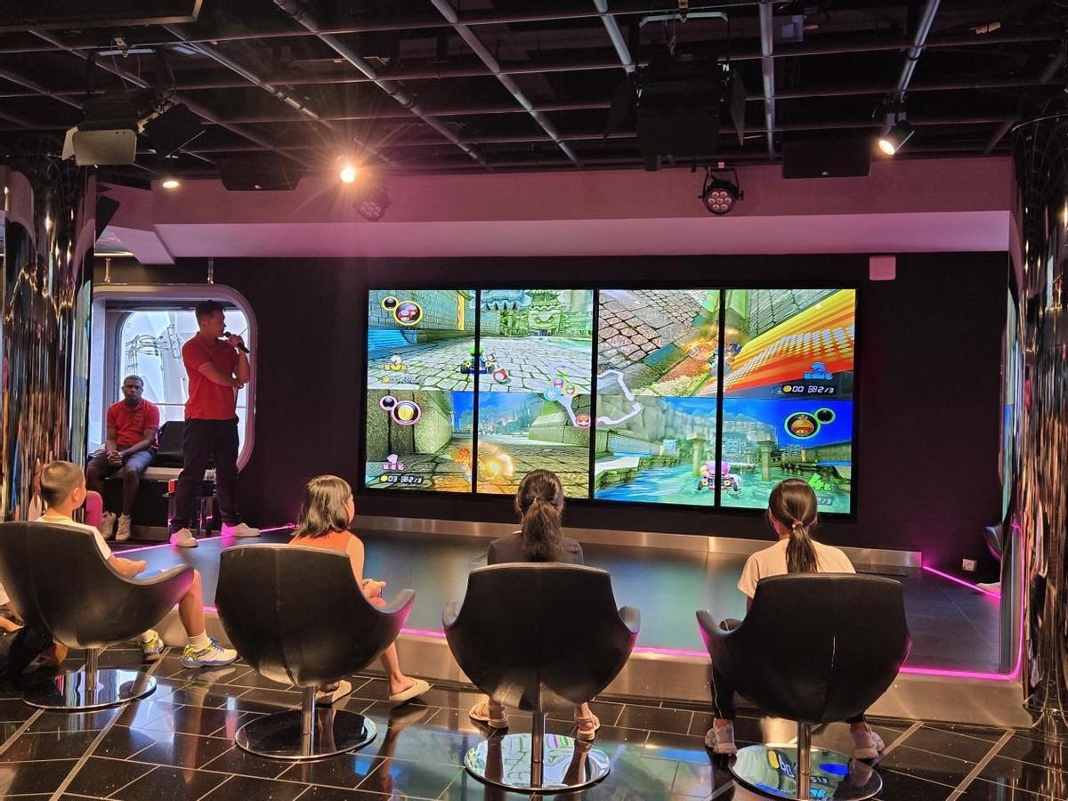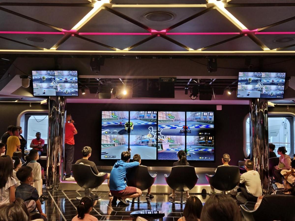 “上榮耀號Switch一夏”會在船上的不同區域舉辦,主要就是利用郵輪的場景,讓大家加入一起遊玩NS遊戲,進一步放大派對同樂的屬性。我自己體驗了《舞力全開》和《馬力歐卡丁車8豪華版》兩個項目,氛圍比想象中還要好。