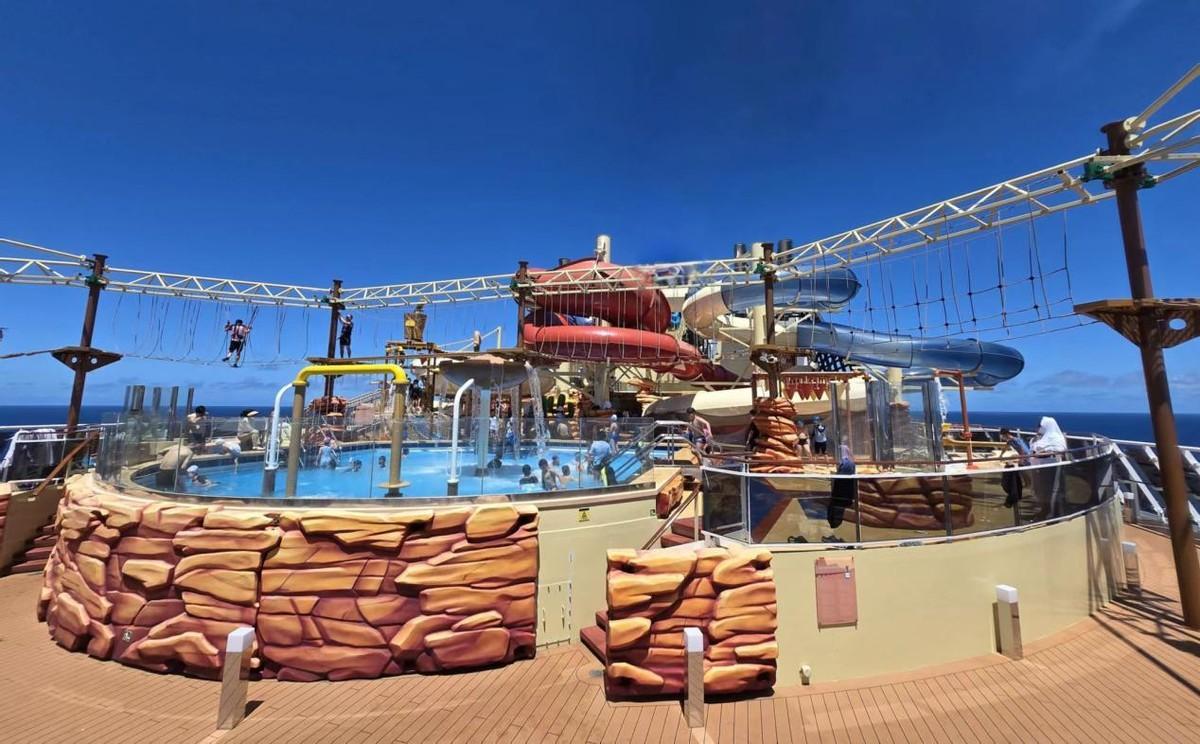 值得一提的是,在最上層的露天甲板,有個佔地面積1000平的亞利桑那水上樂園,完全可以把它看成一個海上多功能遊樂場。
