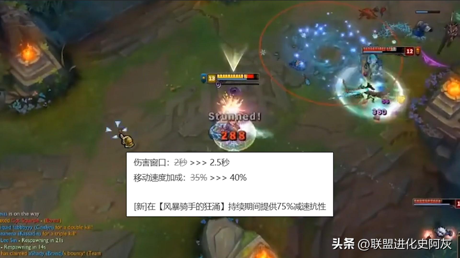 雖說兩兄弟效果差不多,但定位卻不太一樣,風騎光看圖標就知道肯定跟爆發有關,最開始面板是這樣,在2秒內造成目標30%最大生命值的傷害,就會獲得35%移速,持續3秒、冷卻10秒,剛出的時候基本沒人帶,因爲隔壁雷霆太狠了!在絕對的傷害面前一切花裏胡哨都毫無意義。