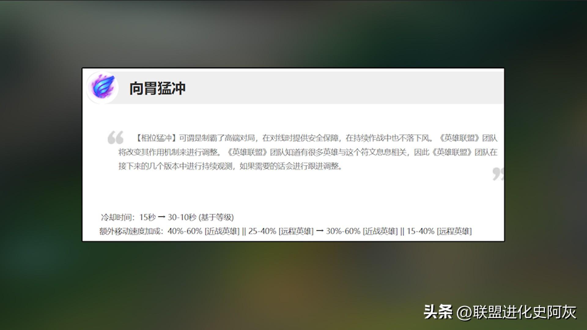 初版相位猛衝非常之蠢,爲啥這麼說呢?設計師本意是想讓這個符文能被更多英雄選擇,然而他們又搞歧視,移除了遠程減速抗性,這也就罷了,近戰能帶相位的大多是AD戰士,可它偏偏又在巫術系裏面,關鍵數值還賊拉胯,除了塔姆,我真想不到哪個英雄帶(初版)相位比風騎吊。
