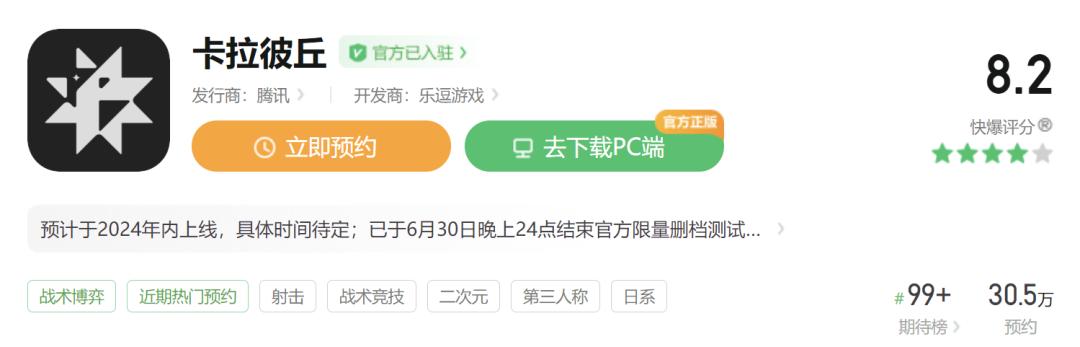 但話說回來,我認爲《卡拉彼丘》作爲一款有體驗門檻的端遊,能跑通「二次元+射擊競技」、穩定發育至今就已經很不錯了,它未來的高點應該是全球市場和移動版的上線,畢竟目前《卡拉彼丘》手遊尚未大規模宣發時,就已拿到了全平臺接近300萬的預約量,而端遊市場份額小,又有長青遊戲珠玉在前,沒必要做一些大跨步的策略。