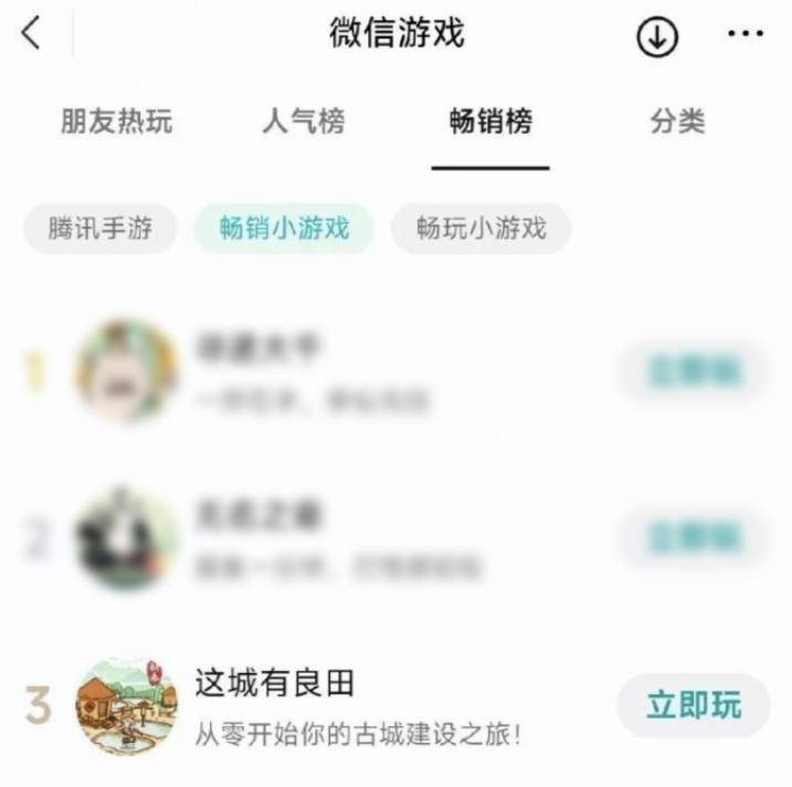 去年10月,《這城有良田》又推出了微信小遊戲版本,截至今年6月,該作一直保持着小遊戲暢銷榜Top 10的位置。