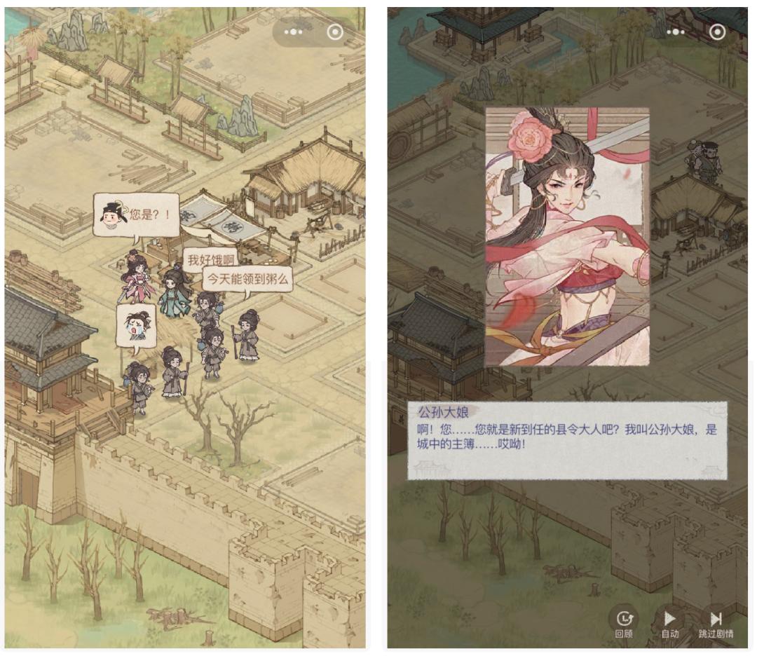 同時,在收菜、賣貨等模擬經營玩法之外,遊戲加進了RPG式的主線。玩家將作爲一名縣令,隨官差來到人丁凋敝、破敗不堪的城邑,偶遇挪用稅款,以賑濟災民的主簿公孫大娘。