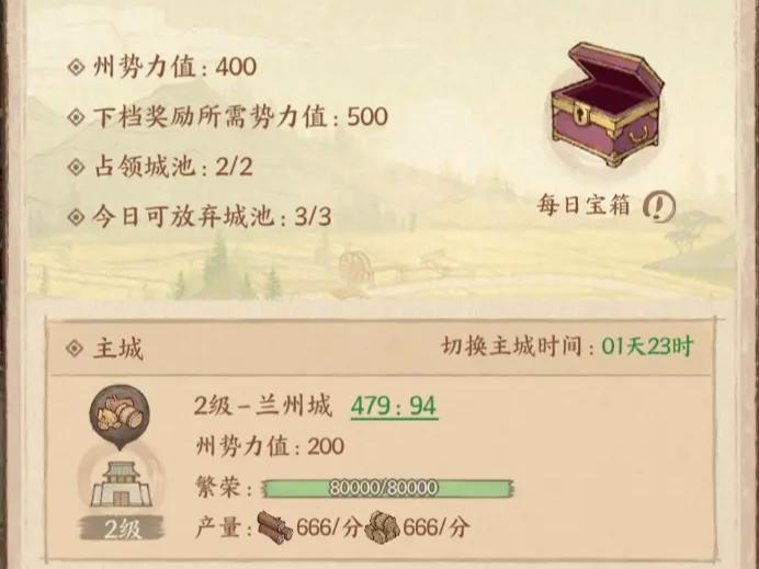 玩家需要收集金礦、木材和糧草三種資源。這些資源可以通過參與日常活動,或者訪問特定建築來獲取,例如,木材就可以從「建木營」獲取。在遊戲的早期階段,木材主要用於建築的建造;而到了後期,木材則更多地用於構建防禦工事和製造攻城器械。