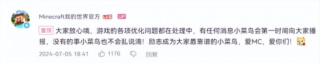 遊戲官方也是在評論區澄清道:“有任何消息小菜鳥會第一時間向大家播報,沒有的事小菜鳥也不會亂說滴”,等同於明着拒絕跟《迷你世界》搞聯動了。