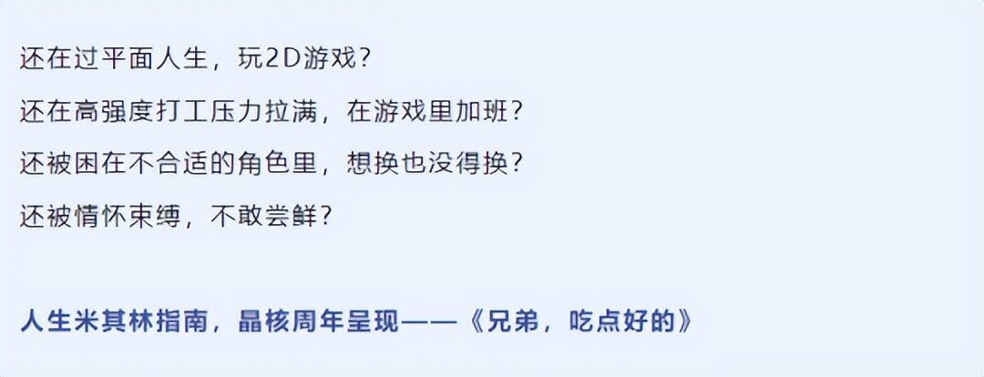 作爲在DNF手遊公測當天,跑去騰訊大廈對面買廣告牌吹自己“真的能打”的狠人,《晶核》在一週年慶期間,也是又搞出了一個喊話DNF玩家的整活視頻:“還在過平面人生,玩2D遊戲?還在高強度打工壓力拉滿,在遊戲里加班?還被困在不合適的角色裏,想換也沒得換?還被情懷束縛,不敢嚐鮮?”