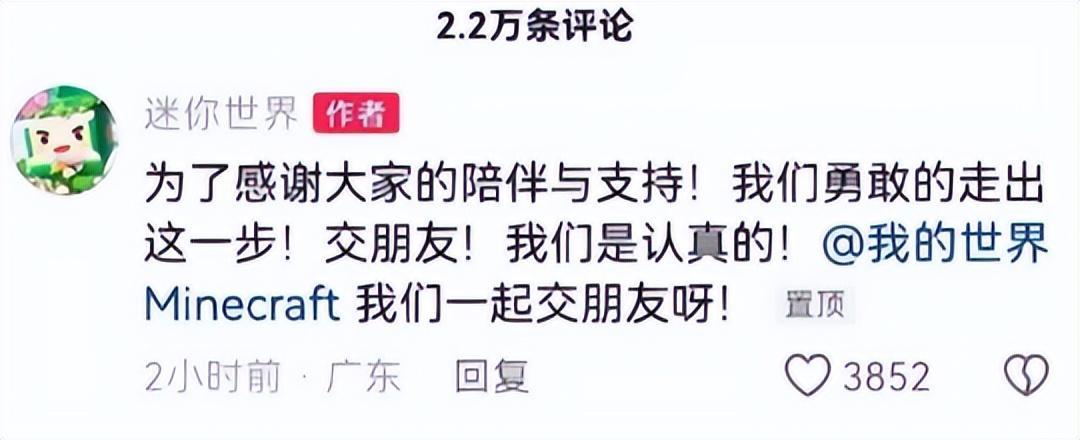 對此,《我的世界》官方也是相當無語,只能在《迷你世界》表白的短視頻平臺上,再度把侵權判決給默默置頂了。