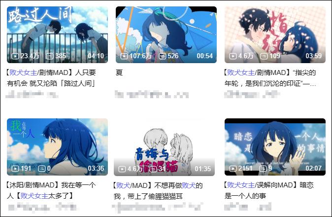 僅僅一個月後,《敗犬女主》在B站的熱度就就一飛沖天。很難想象在2024年,一部沒有正式引進的動畫,二創竟然會隨着劇集推進持續更新。每週都有幾十萬播放的二創刷到時間線上。
