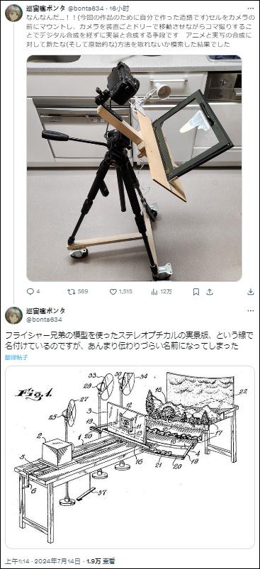 在製作組這裏,他們在製作ED時是先將賽璐璐固定在相機前面,用移動攝影車連同裝置來移動相機,進行逐幀拍攝。