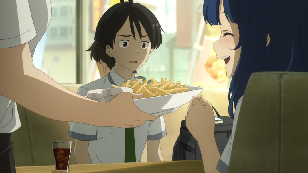 而在察覺自己的行動被男主溫水和彥撞破後,索性直接坐到了他的對面,開始各種自說自話。爲了緩解鬱悶,八柰見還點了一堆餐點,大快朵頤……更重要的是,她還沒帶錢,只能找男主代付。