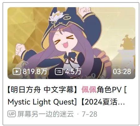 誰知迴旋鏢悄無聲息地來了——當佩佩的角色曲《Mystic Light Quest》搭配其角色PV,在UP主@屏幕另一邊的迷雲的賬號發佈後,熱度突然史無前例地驚天大爆了。因爲這首曲子的旋律魔性又洗腦,把埃及音樂和古早日常番OP的風格結合在了一起,有種特立獨行的懷舊感。